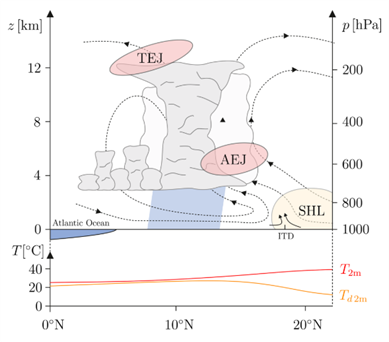 The strength of the SHL also impacts the African Easterly Jet (AEJ) – where the temperature and rate at which the air diverges out of the top of the SHL correlates to the intensity of the AEJ.